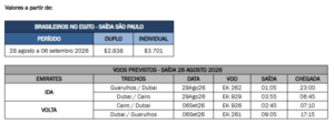 1º dia – 28/08 e 29/08 | São Paulo ✈ Cairo
